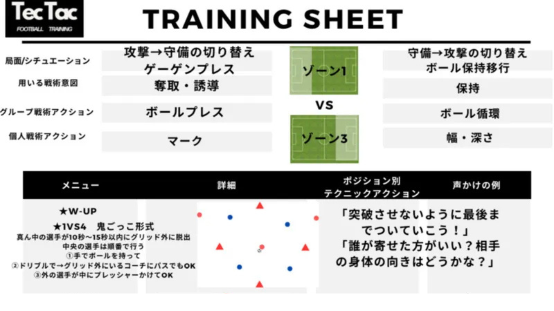 練習メニューは、すべて欧州で実際に活用されるメソッド。メソッドダイレクターが1から考えて作る、オーダーメイドのトレーニングです。